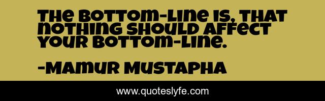 This page presents the quote "The bottom-line is, that nothing should affect your bottom-line.". Author of this quote is Mamur Mustapha. This quote is about profit, bottom-line, profitability, business, strategy,.