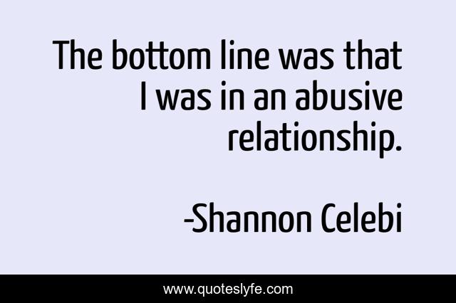 This page presents the quote "The bottom line was that I was in an abusive relationship.". Author of this quote is Shannon Celebi. This quote is about relationships, bottom-line, relationship, abuse, abuse-survivor,.