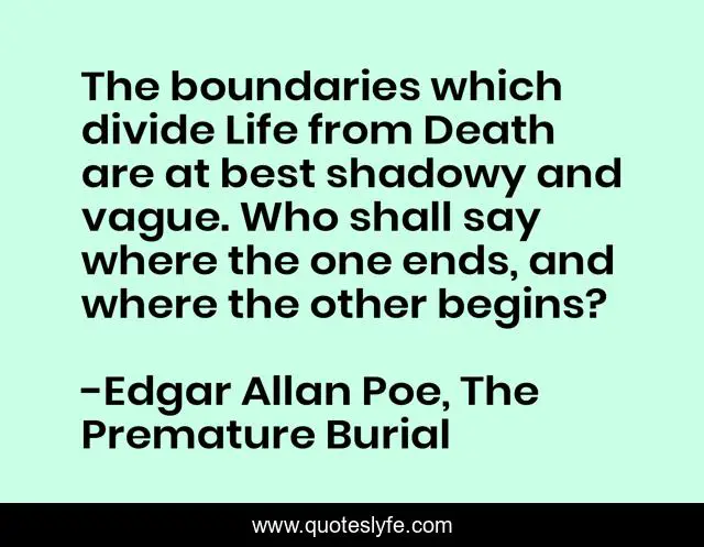 "Edgar Allan Poe, The Premature Burial Quotes." Quoteslyfe.com, 2025. Sun. 14 Dec. 2025. <https://www.quoteslyfe.com/quote/The-boundaries-which-divide-Life-from-Death-2504>.
