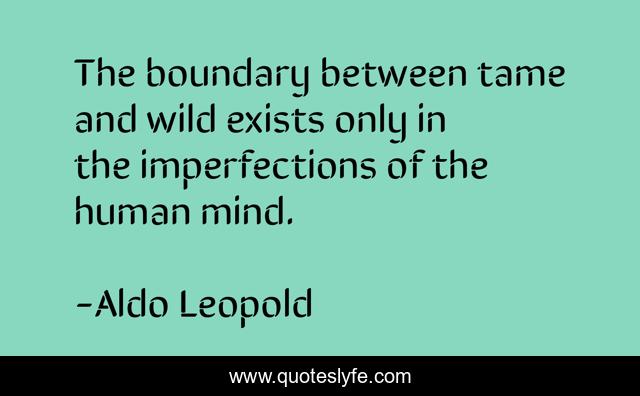 This page presents the quote "The boundary between tame and wild exists only in the imperfections of the human mind.". Author of this quote is Aldo Leopold. This quote is about environment, enthusiasm, conservation, inspirational,.