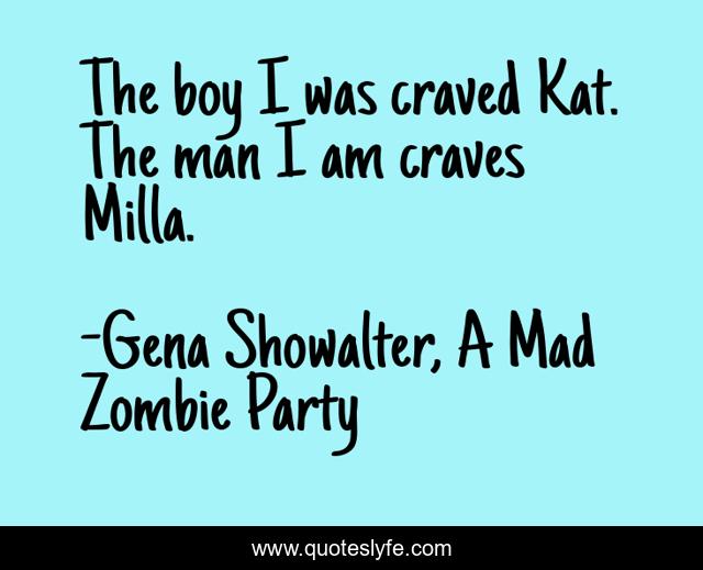 This page presents the quote "The boy I was craved Kat. The man I am craves Milla.". Author of this quote is Gena Showalter, A Mad Zombie Party. This quote is about romance, cute, hawt,.