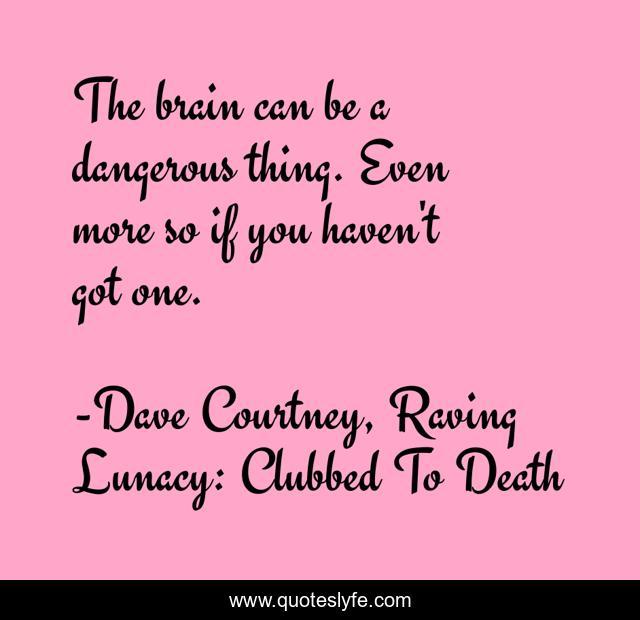 "Dave Courtney, Raving Lunacy: Clubbed To Death Quotes." Quoteslyfe.com, 2025. Sat. 06 Dec. 2025. <https://www.quoteslyfe.com/quote/The-brain-can-be-a-dangerous-thing-41125>.