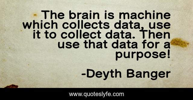 This page presents the quote "The brain is machine which collects data, use it to collect data. Then use that data for a purpose!". Author of this quote is Deyth Banger. This quote is about machine, brain, data, purpose,.