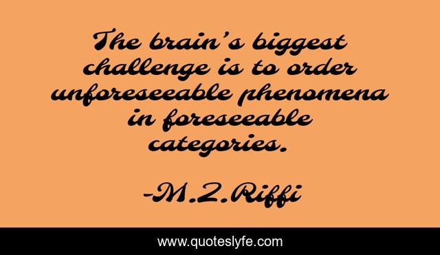 This page presents the quote "The brain’s biggest challenge is to order unforeseeable phenomena in foreseeable categories.". Author of this quote is M.Z.Riffi. .