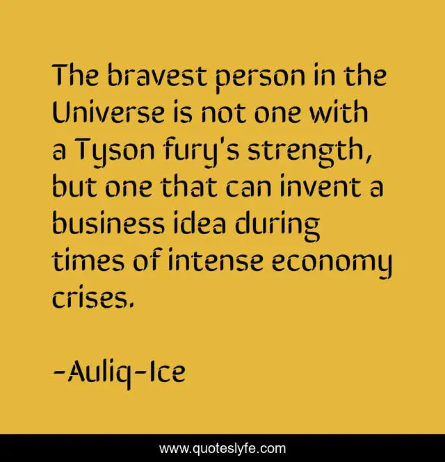 This page presents the quote "The bravest person in the Universe is not one with a Tyson fury's strength, but one that can invent a business idea during times of intense economy crises.". Author of this quote is Auliq-Ice. .