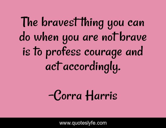 This page presents the quote "The bravest thing you can do when you are not brave is to profess courage and act accordingly.". Author of this quote is Corra Harris. .