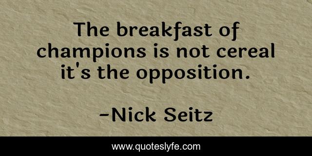 This page presents the quote "The breakfast of champions is not cereal it's the opposition.". Author of this quote is Nick Seitz. .