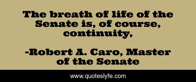 This page presents the quote "The breath of life of the Senate is, of course, continuity, ". Author of this quote is Robert A. Caro, Master of the Senate. This quote is about politics, power, status-quo,.