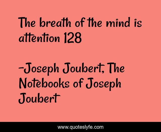 This page presents the quote "The breath of the mind is attention 128". Author of this quote is Joseph Joubert, The Notebooks of Joseph Joubert. This quote is about breath, attention,.