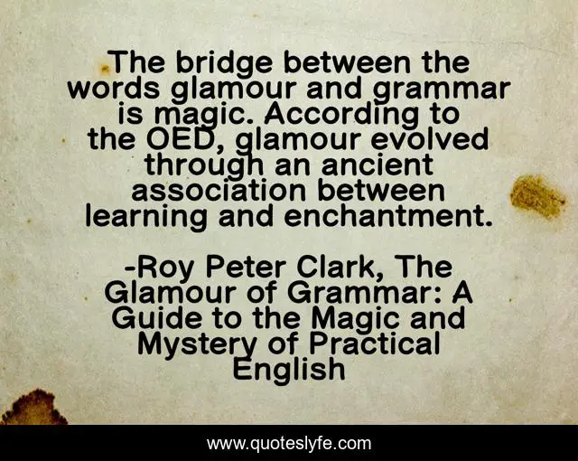 "Roy Peter Clark, The Glamour of Grammar: A Guide to the Magic and Mystery of Practical English Quotes." Quoteslyfe.com, 2025. Fri. 05 Dec. 2025. <https://www.quoteslyfe.com/quote/The-bridge-between-the-words-glamour-and-117480>.