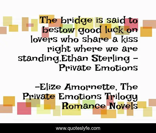 "Elize Amornette, The Private Emotions Trilogy Romance Novels Quotes." Quoteslyfe.com, 2025. Mon. 08 Dec. 2025. <https://www.quoteslyfe.com/quote/The-bridge-is-said-to-bestow-good-132506>.