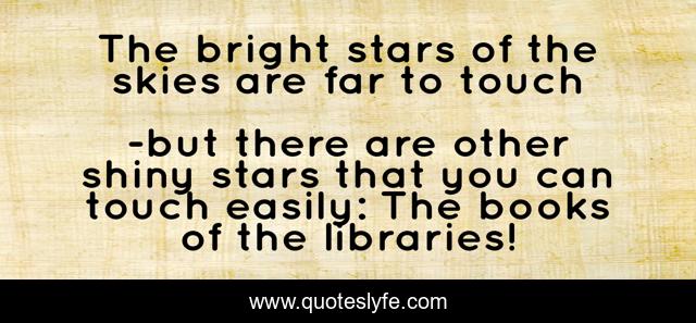 This page presents the quote "The bright stars of the skies are far to touch". Author of this quote is but there are other shiny stars that you can touch easily: The books of the libraries!. .