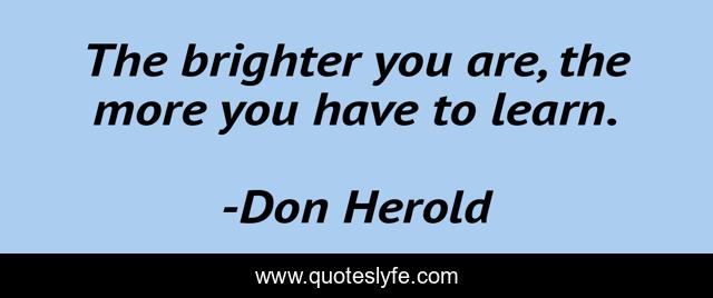 This page presents the quote "The brighter you are, the more you have to learn.". Author of this quote is Don Herold. This quote is about learning, brightness,.
