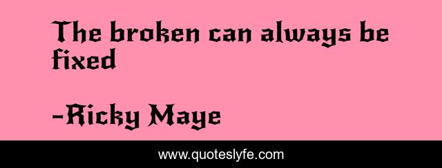 "Ricky Maye Quotes." Quoteslyfe.com, 2025. Fri. 05 Dec. 2025. <https://www.quoteslyfe.com/quote/The-broken-can-always-be-fixed-246041>.