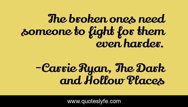 "Carrie Ryan, The Dark and Hollow Places Quotes." Quoteslyfe.com, 2025. Sat. 06 Dec. 2025. <https://www.quoteslyfe.com/quote/The-broken-ones-need-someone-to-fight-220302>.