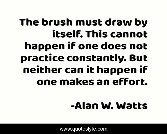 This page presents the quote "The brush must draw by itself. This cannot happen if one does not practice constantly. But neither can it happen if one makes an effort.". Author of this quote is Alan W. Watts. This quote is about art, practice, effort, intent, zen,.