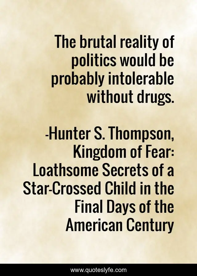 "Hunter S. Thompson, Kingdom of Fear: Loathsome Secrets of a Star-Crossed Child in the Final Days of the American Century Quotes." Quoteslyfe.com, 2025. Mon. 08 Dec. 2025. <https://www.quoteslyfe.com/quote/The-brutal-reality-of-politics-would-be-56665>.