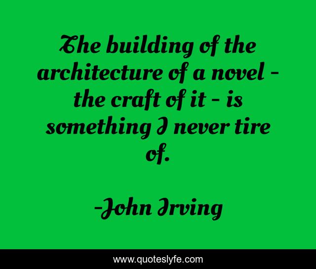 This page presents the quote "The building of the architecture of a novel - the craft of it - is something I never tire of.". Author of this quote is John Irving. This quote is about building, craft,.