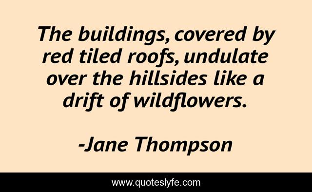 This page presents the quote "The buildings, covered by red tiled roofs, undulate over the hillsides like a drift of wildflowers.". Author of this quote is Jane Thompson. This quote is about mental-health, bipolar-disorder,.