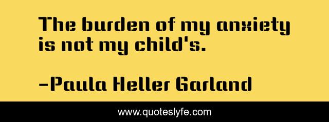 This page presents the quote "The burden of my anxiety is not my child's.". Author of this quote is Paula Heller Garland. .