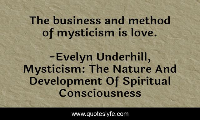 This page presents the quote "The business and method of mysticism is love.". Author of this quote is Evelyn Underhill, Mysticism: The Nature And Development Of Spiritual Consciousness. This quote is about mysticism, love, affection, spirituality,.