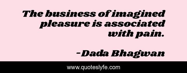 This page presents the quote "The business of imagined pleasure is associated with pain.". Author of this quote is Dada Bhagwan. This quote is about sufferings, bussiness, spiritual,.