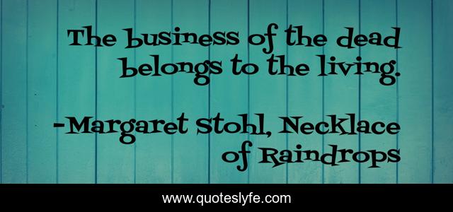 "Margaret Stohl, Necklace of Raindrops Quotes." Quoteslyfe.com, 2025. Tue. 09 Dec. 2025. <https://www.quoteslyfe.com/quote/The-business-of-the-dead-belongs-to-105236>.
