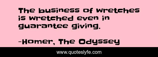 This page presents the quote "The business of wretches is wretched even in guarantee giving.". Author of this quote is Homer, The Odyssey. This quote is about hephaistos, aphorism,.