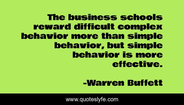This page presents the quote "The business schools reward difficult complex behavior more than simple behavior, but simple behavior is more effective.". Author of this quote is Warren Buffett. This quote is about simple, reward, behavior,.