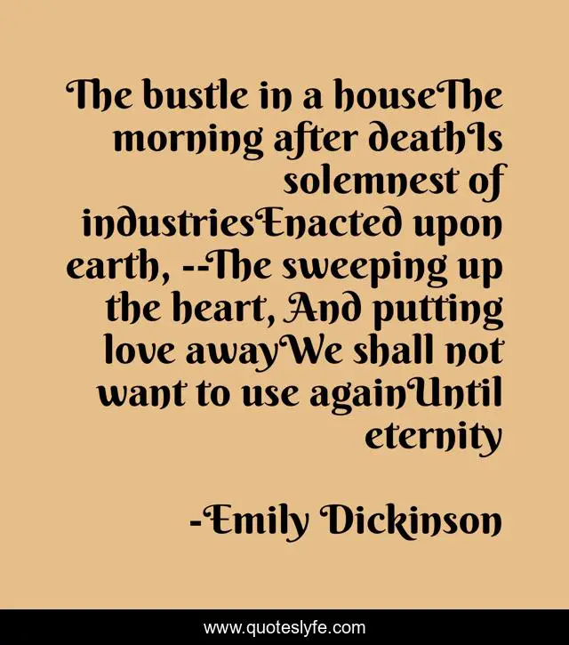 "Emily Dickinson Quotes." Quoteslyfe.com, 2025. Mon. 08 Dec. 2025. <https://www.quoteslyfe.com/quote/The-bustle-in-a-houseThe-morning-after-21215>.