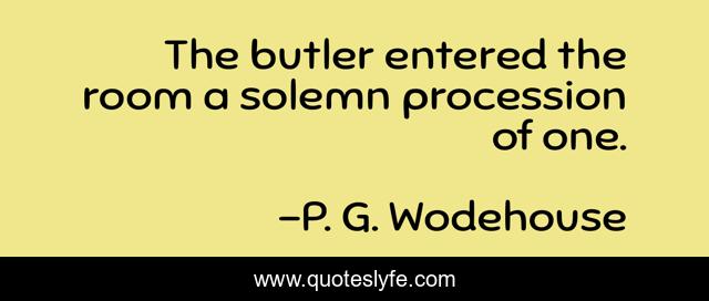 This page presents the quote "The butler entered the room a solemn procession of one.". Author of this quote is P. G. Wodehouse. This quote is about quips, comments,.
