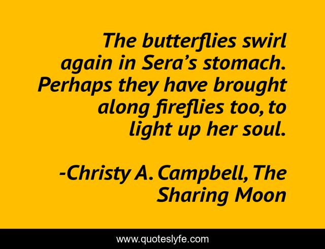 "Christy A. Campbell, The Sharing Moon Quotes." Quoteslyfe.com, 2025. Fri. 05 Dec. 2025. <https://www.quoteslyfe.com/quote/The-butterflies-swirl-again-in-Sera-s-114313>.