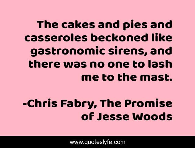 "Chris Fabry, The Promise of Jesse Woods Quotes." Quoteslyfe.com, 2025. Mon. 08 Dec. 2025. <https://www.quoteslyfe.com/quote/The-cakes-and-pies-and-casseroles-beckoned-168110>.
