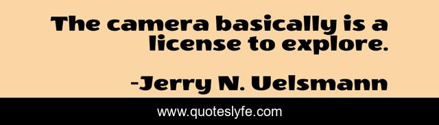 This page presents the quote "The camera basically is a license to explore.". Author of this quote is Jerry N. Uelsmann. This quote is about art, photography, cameras, exploration,.