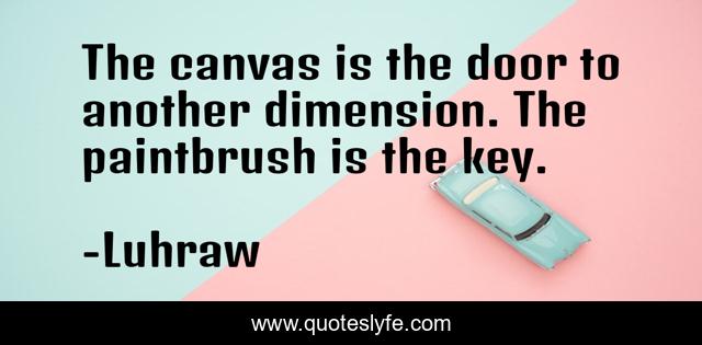 This page presents the quote "The canvas is the door to another dimension. The paintbrush is the key.". Author of this quote is Luhraw. This quote is about arts, artists-life, art, luhraw, abstract, canvas, painters, abstraction, painting,.