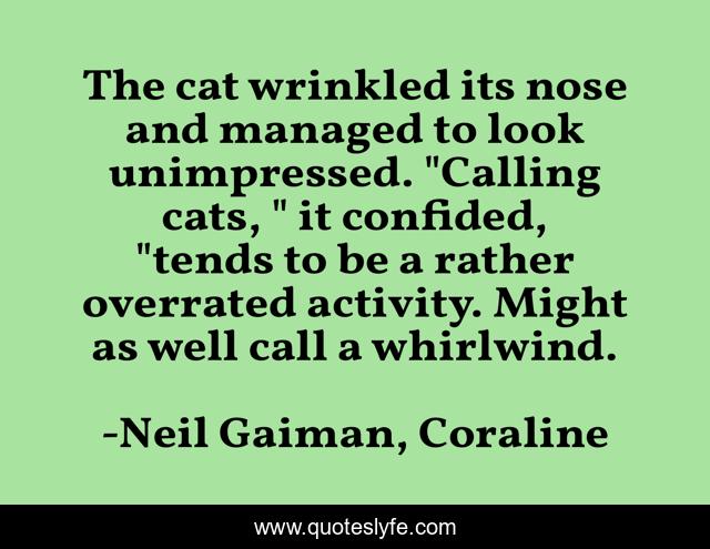 This page presents the quote "The cat wrinkled its nose and managed to look unimpressed. "Calling cats, " it confided, "tends to be a rather overrated activity. Might as well call a whirlwind.". Author of this quote is Neil Gaiman, Coraline. .