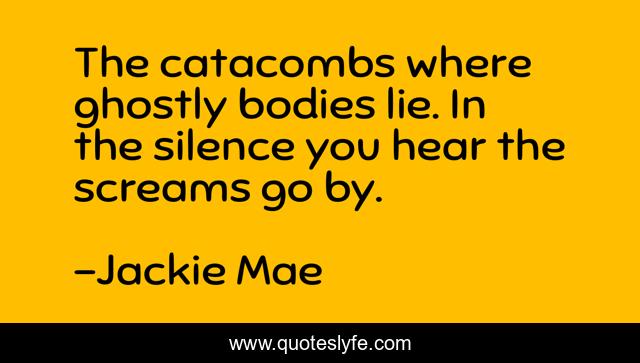This page presents the quote "The catacombs where ghostly bodies lie. In the silence you hear the screams go by.". Author of this quote is Jackie Mae. This quote is about scary, poe, paranormal-thriller, sci-fi,.