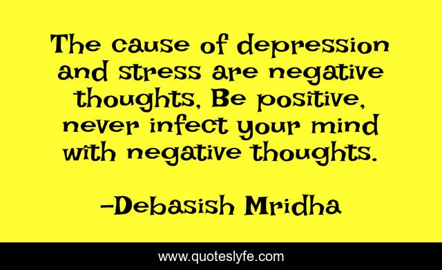 This page presents the quote "The cause of depression and stress are negative thoughts, Be positive, never infect your mind with negative thoughts.". Author of this quote is Debasish Mridha. This quote is about life, debasish, mridha, philosophy, mind, negative, stress, depression, positive,.