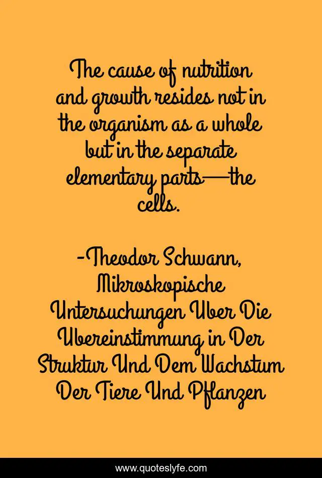 "Theodor Schwann, Mikroskopische Untersuchungen Uber Die Ubereinstimmung in Der Struktur Und Dem Wachstum Der Tiere Und Pflanzen Quotes." Quoteslyfe.com, 2025. Mon. 08 Dec. 2025. <https://www.quoteslyfe.com/quote/The-cause-of-nutrition-and-growth-resides-250006>.