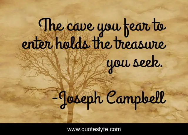 This page presents the quote "The cave you fear to enter holds the treasure you seek.". Author of this quote is Joseph Campbell. This quote is about fear, cave,.