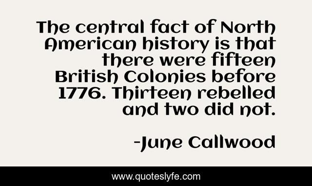 This page presents the quote "The central fact of North American history is that there were fifteen British Colonies before 1776. Thirteen rebelled and two did not.". Author of this quote is June Callwood. This quote is about america, americans,.