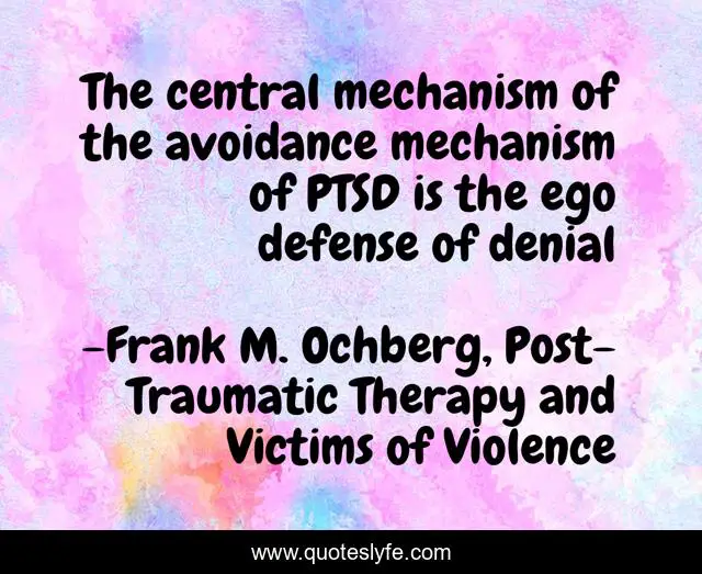 "Frank M. Ochberg, Post-Traumatic Therapy and Victims of Violence Quotes." Quoteslyfe.com, 2025. Fri. 05 Dec. 2025. <https://www.quoteslyfe.com/quote/The-central-mechanism-of-the-avoidance-mechanism-211200>.