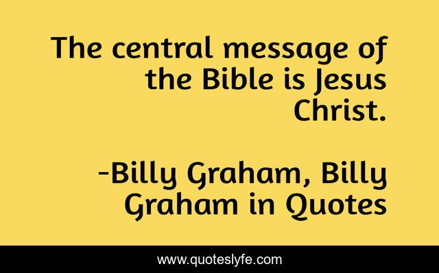 This page presents the quote "The central message of the Bible is Jesus Christ.". Author of this quote is Billy Graham, Billy Graham in Quotes. This quote is about billy-graham, jesus,.