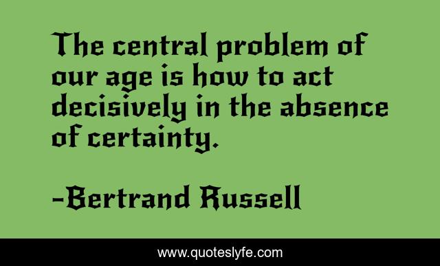 This page presents the quote "The central problem of our age is how to act decisively in the absence of certainty.". Author of this quote is Bertrand Russell. .