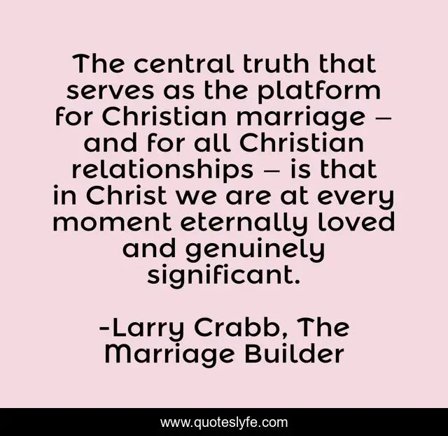 This page presents the quote "The central truth that serves as the platform for Christian marriage — and for all Christian relationships — is that in Christ we are at every moment eternally loved and genuinely significant.". Author of this quote is Larry Crabb, The Marriage Builder. This quote is about relationships, christian, marriage, love, truth-of-life, affection,.