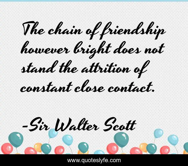 This page presents the quote "The chain of friendship however bright does not stand the attrition of constant close contact.". Author of this quote is Sir Walter Scott. .