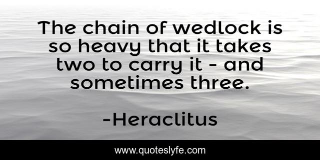 This page presents the quote "The chain of wedlock is so heavy that it takes two to carry it - and sometimes three.". Author of this quote is Heraclitus. This quote is about sometimes, three, chain,.