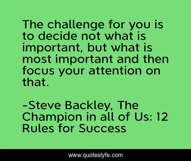 "Steve Backley, The Champion in all of Us: 12 Rules for Success Quotes." Quoteslyfe.com, 2025. Fri. 05 Dec. 2025. <https://www.quoteslyfe.com/quote/The-challenge-for-you-is-to-decide-32433>.