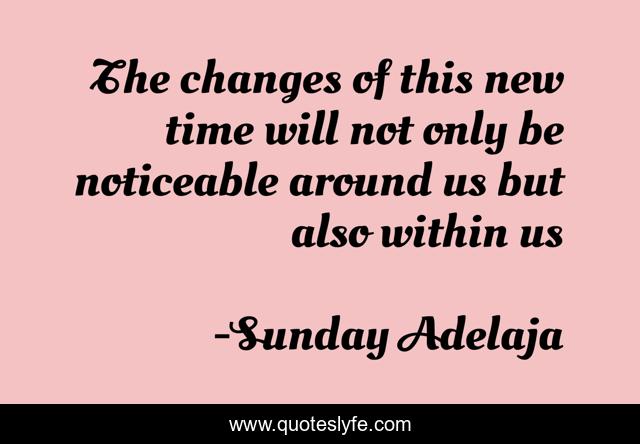 This page presents the quote "The changes of this new time will not only be noticeable around us but also within us". Author of this quote is Sunday Adelaja. This quote is about money, riches, wealth, change,.
