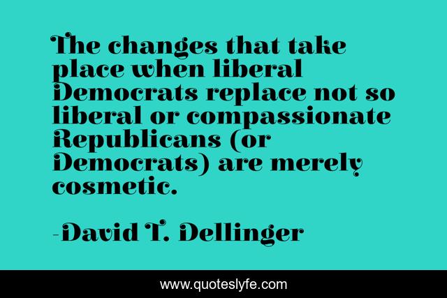 This page presents the quote "The changes that take place when liberal Democrats replace not so liberal or compassionate Republicans (or Democrats) are merely cosmetic.". Author of this quote is David T. Dellinger. This quote is about elections, republicans, democrats, democracy, voting,.